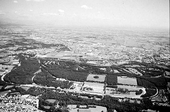 Monza es un sitio mágico. Hace magia. De verdad. El que llega allí sin gustarle las carreras, se vuelve adicto compulsivo, y el lugar le inocula un veneno que le transforma para siempre. No se sabe muy bien si es algo en el aire, en las plantas o el agua, pero ocurre de manera inevitable. Il Autodromo va para centenario porque se construyó en 1922, y aunque desde entonces ha cambiado su fisonomía, quedan vestigios de su historia. El más evidente es «el peralte», un vestigio de cuando la vida de los pilotos no tenía mucho más valor que una pieza cualquiera del coche. Inicialmente el trazado era como un donut gigantesco cuyas dos únicas curvas estaban separadas por dos largas rectas paralelas. Estas curvas tenían un altísimo peralte por el que los coches pasaban a toda velocidad desafiando la ley de la gravedad con una única pega: el que perdía el control de su bólido necesitaría alas o un paracaídas, porque salía volando. Ante la continua sangría de participantes se dejó de usar en 1969, pero si vas a Monza, no puedes volver sin tu foto paseando por él; los coches no pueden pasar pero si vas a pie, sí que podrás. La pista está dentro de los jardines vallados más grandes del mundo, pertenecientes a los jardines de la Villa Reale, palacete que mandó construir María Teresa de Austria en 1777. Dentro del «jardincito» hay un campo de golf, un hipódromo, y la Catedral de la Velocidad, Il Autodromo. Este parque es público y como es de libre acceso al visitante, cuando hay carreras, mientras corres de curva a curva —si eres fotógrafo acreditado—, en lugar de cruzarte con ingenieros o mecánicos te topas con familias, chicas paseando a perritos o gente en bicicleta. Lo que está vallado es la visión de la pista, tanto por fuera como por dentro de ella. El Gran Premio de Italia es un clásico en el calendario de festejos local y la norma no escrita ordena saltar la tapia la noche antes para dormir dentro sin pasar por taquilla. La gente cumple con la tradición muy a pesar de los responsables de la seguridad que poco o nada pueden hacer. En el año 1999 calcularon que de ciento ochenta mil personas presentes en la prueba, una de cada tres se les había colado. Por la noche, los gorrones montan barbacoas, duermen en tiendas de campaña o tirados por el suelo y se despiertan con el ruido de los motores. ¿Habrá una manera mejor de despertarse para un aficionado a las carreras que con el bramido de un F1? Pues pasan a escasos metros si te colocas bien.